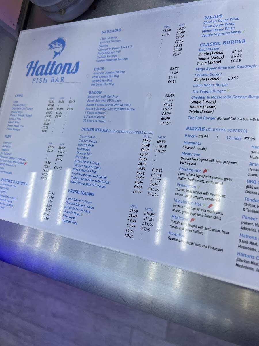 Overall, the menu is structured to serve a range of classic British takeaway dishes with additional kebab and pizza options, suitable for lunch or evening meals. It supports convenient takeout ordering, catering to those seeking fried foods, kebabs, or pizza in a straightforward and accessible format.